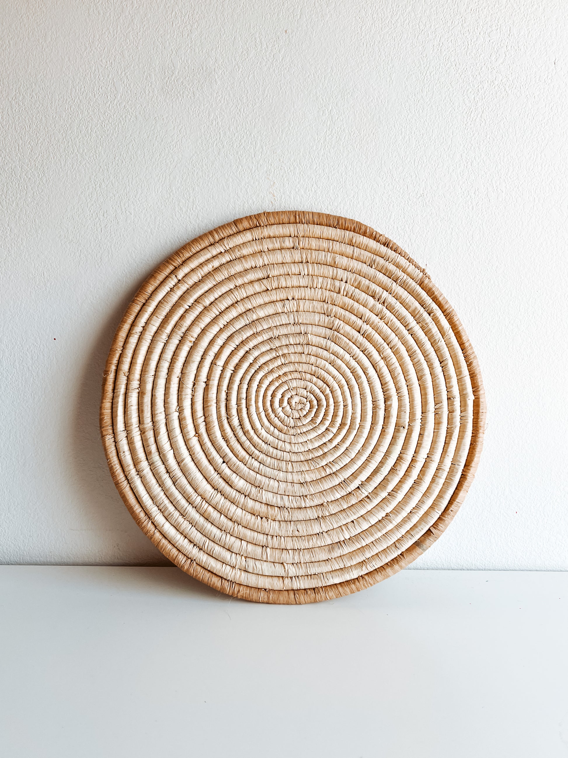 Designed by Laura Hodges, these multiuse trivets will protect any counter or tabletop and they also come with a hand stitched loop on the back to serve as wall decor. This gorgeous, woven piece is a true work of art. Use as an exquisite centerpiece to any tabletop or in wall collection. Short on space? Hang it on your kitchen walls for a functional, beautiful way to store it.